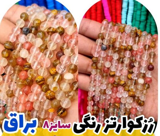 سنگ رز کوارتز رنگی براق سایز8( فروش در واحد نصف ریسه )