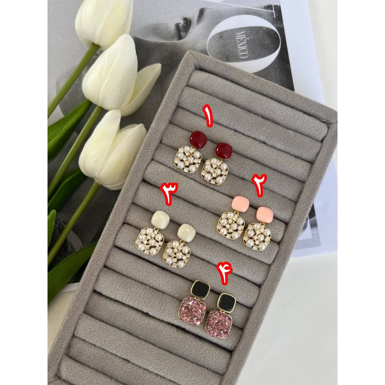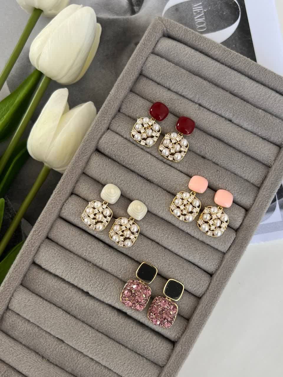– رنگهای زیبا: بلورهای Swarovski به رنگهای متنوع از آبی، سبز، قرمز، صورتی و … تولید میشوند، که گوشوارههای زیبایی با طراحیهای مختلف ایجاد میکنند.