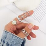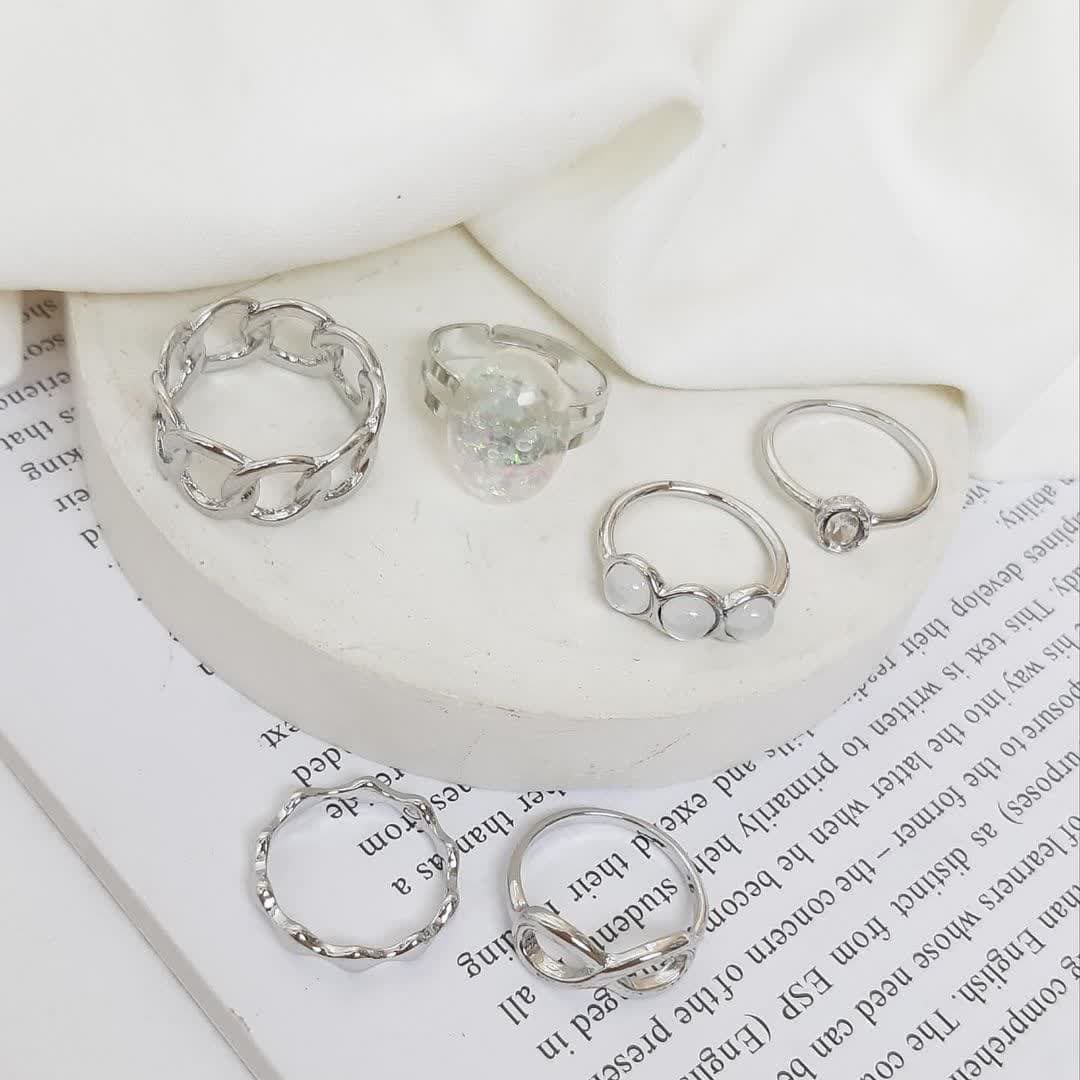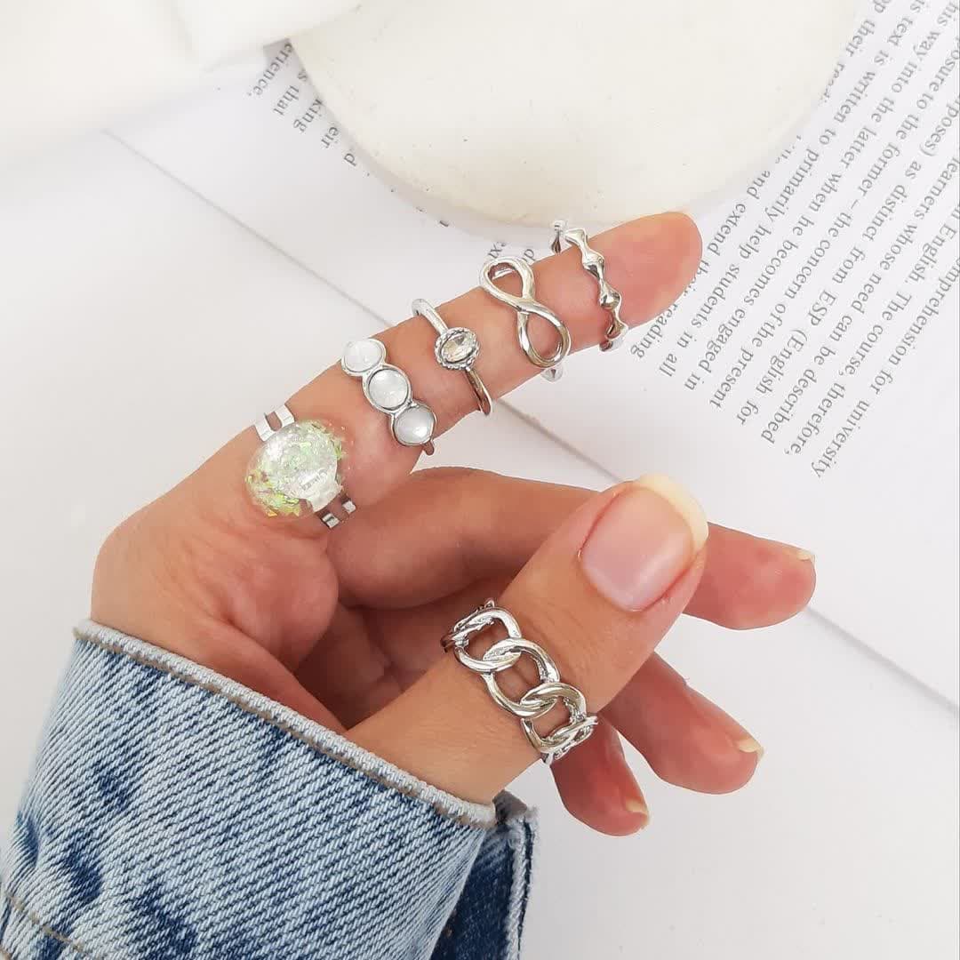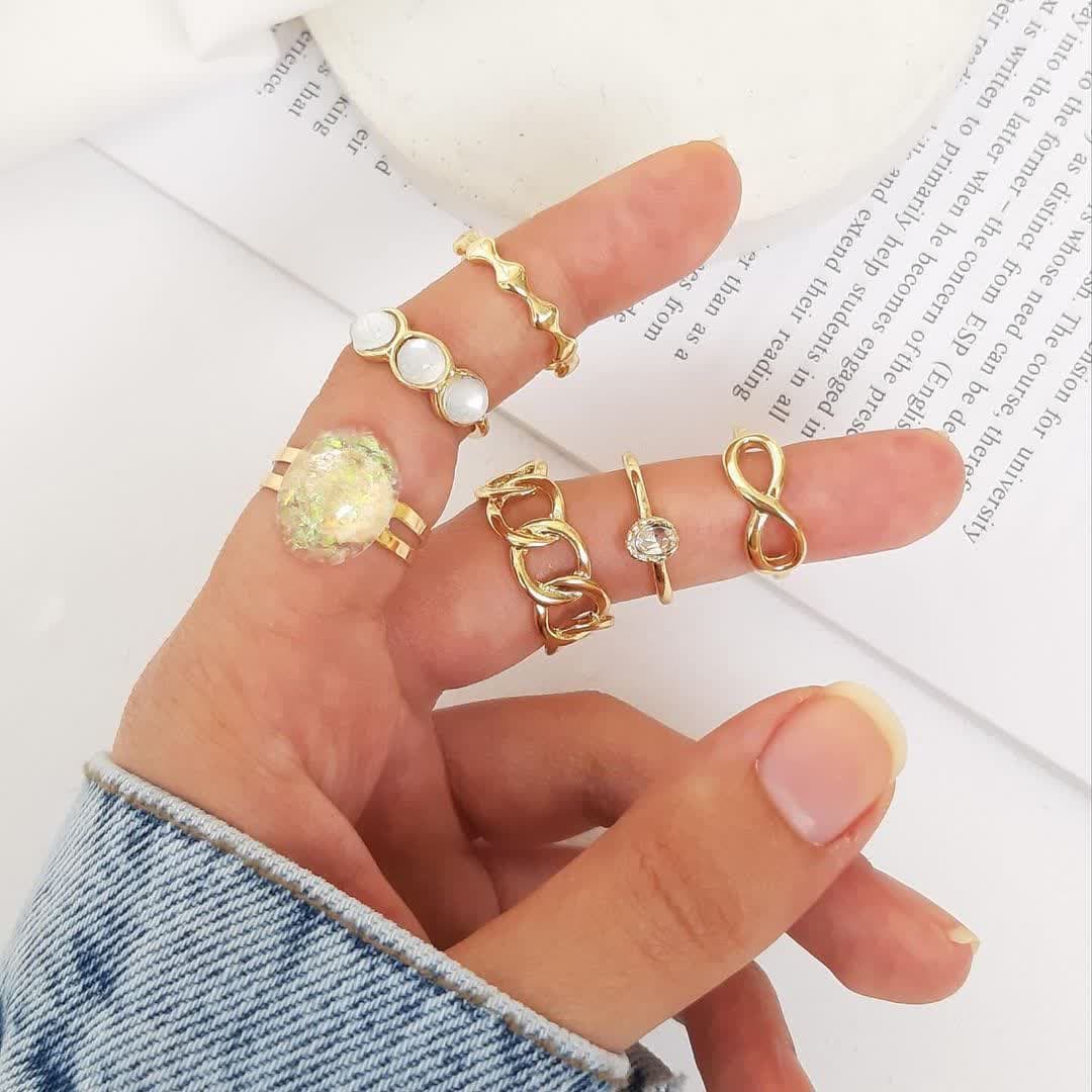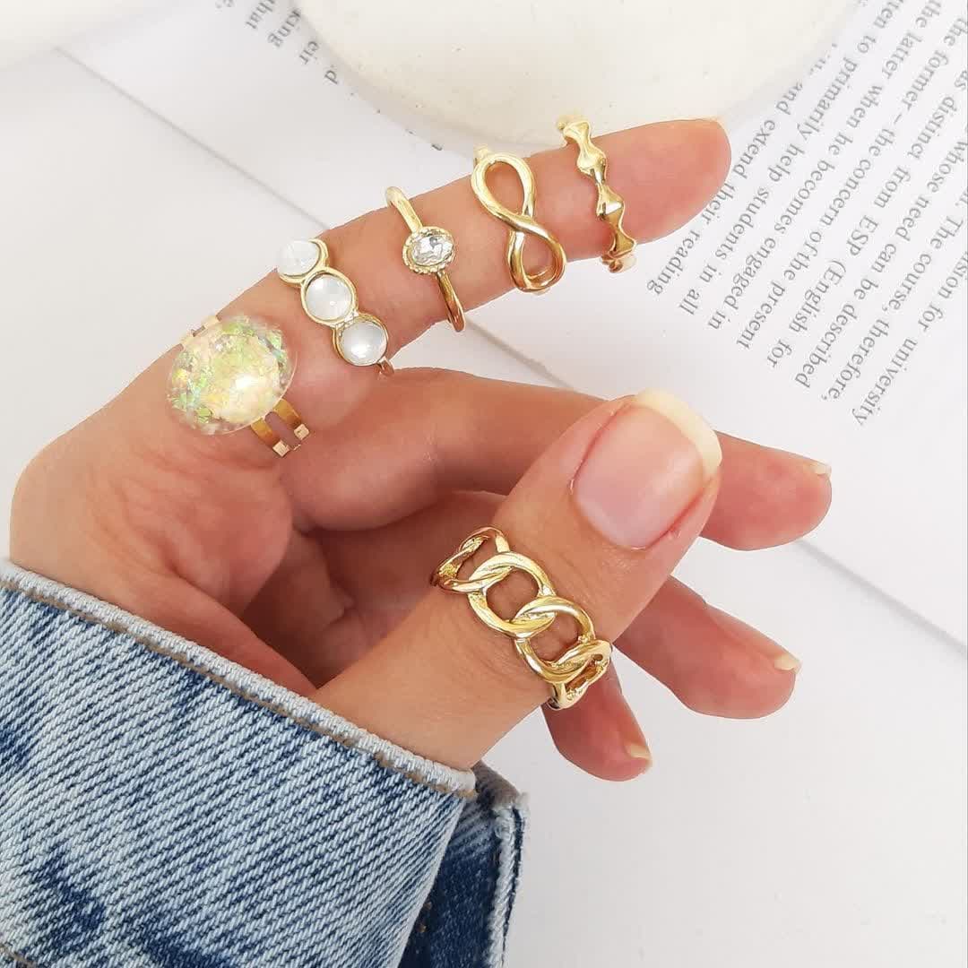 پک انگشتر صدفی کیفیت بالا شامل6 عدد انگشتر فری سایز ابکاری قوی